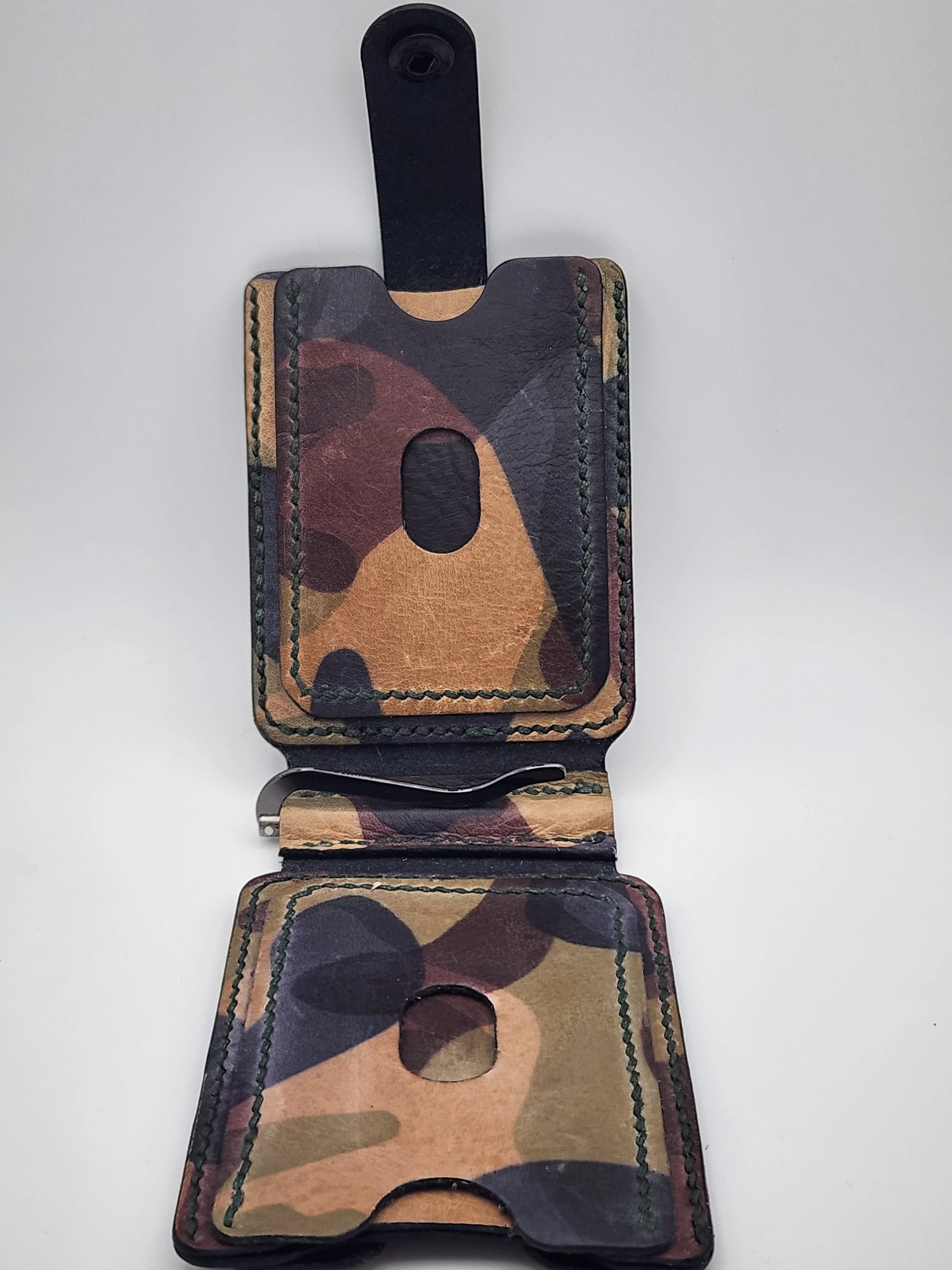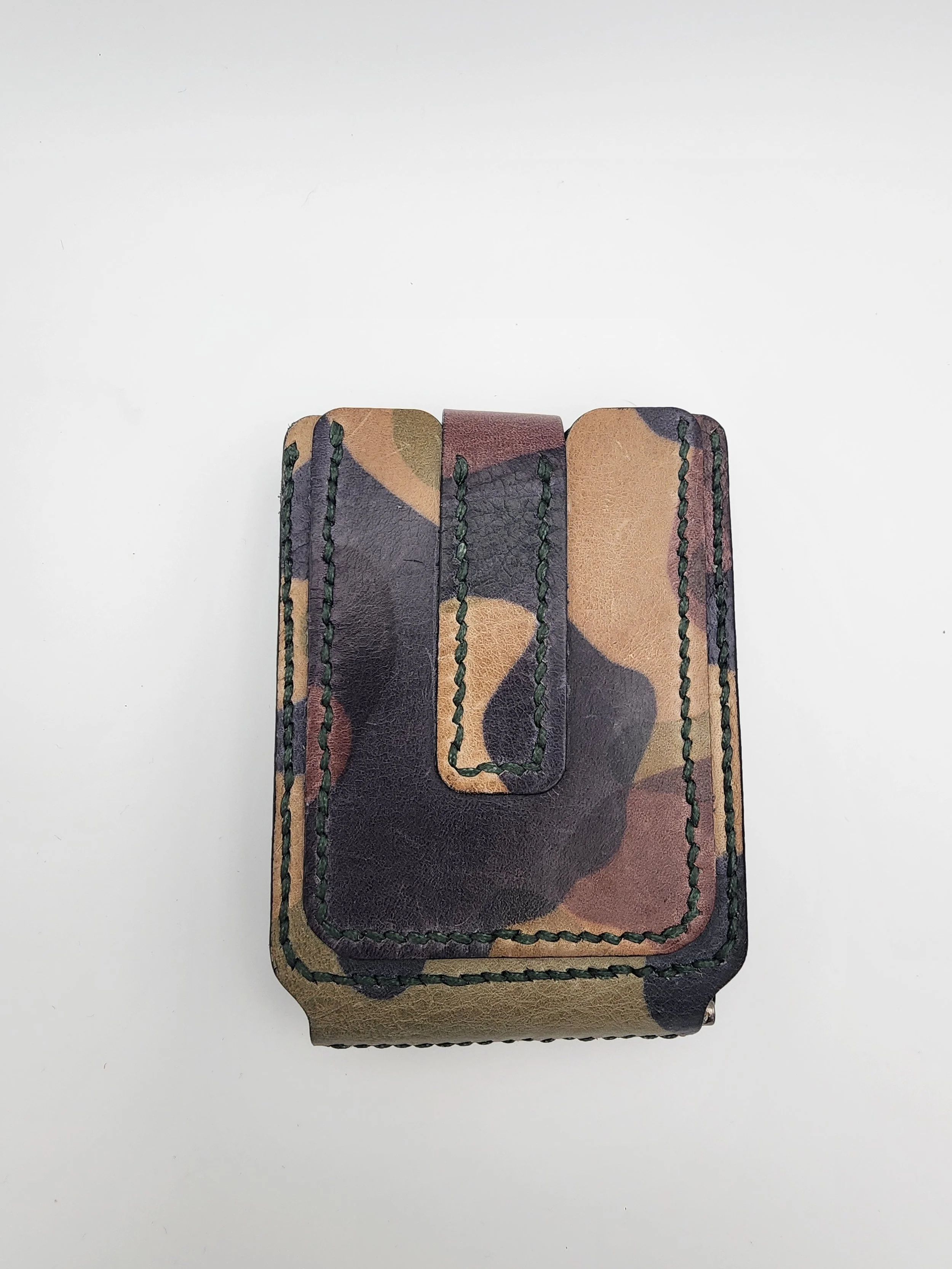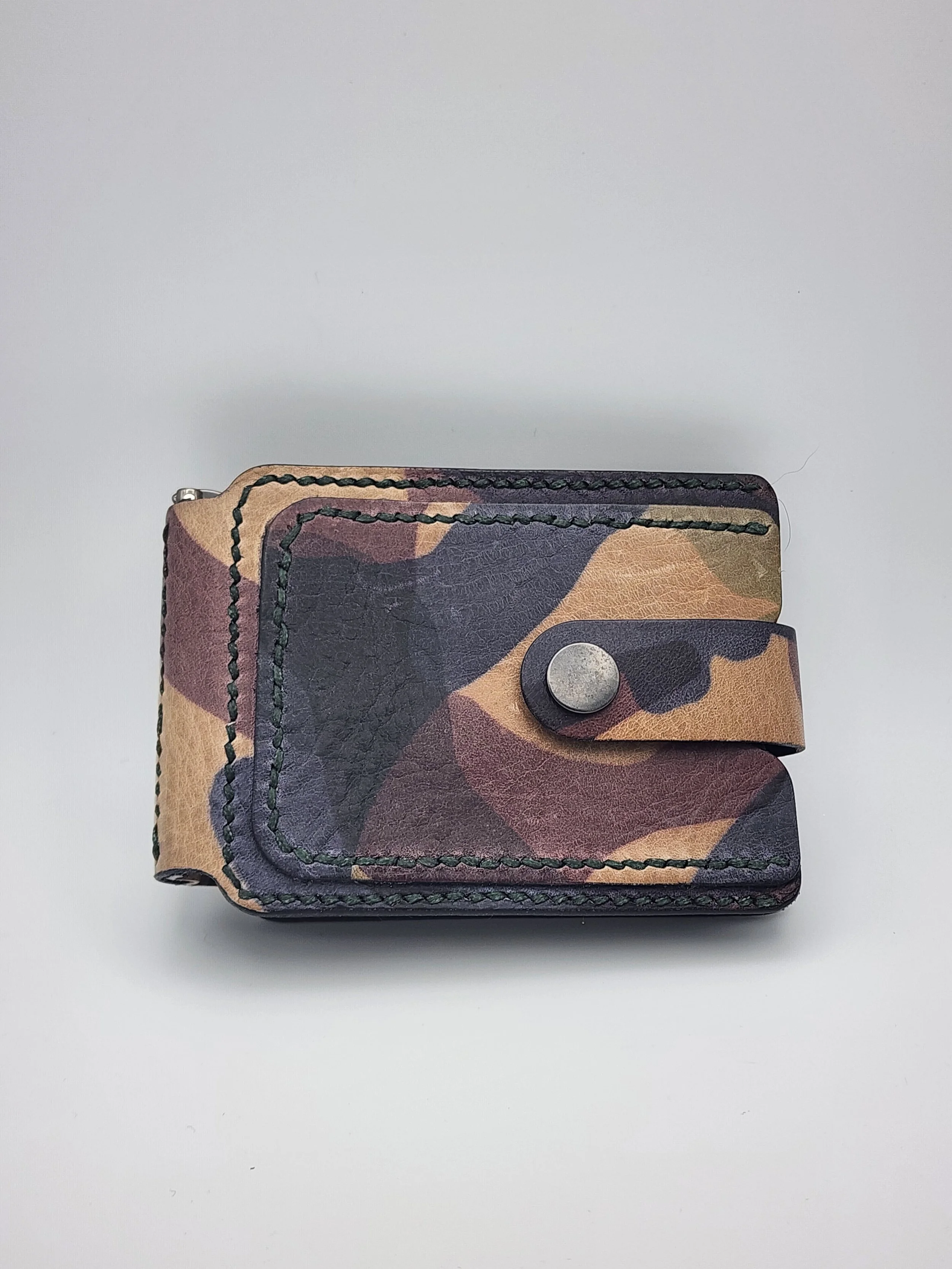 Our Money Clip Wallet crafted from Conceria Walpier’s "Camo" leather combines functionality with refined craftsmanship. Designed to securely hold multiple cards while featuring a central money clip, this wallet offers a sleek, organized solution for everyday carry. The distinctive camo-patterned leather not only provides durability but also a unique, stylish appearance. Ideal for those who value practicality without compromising on quality and design.